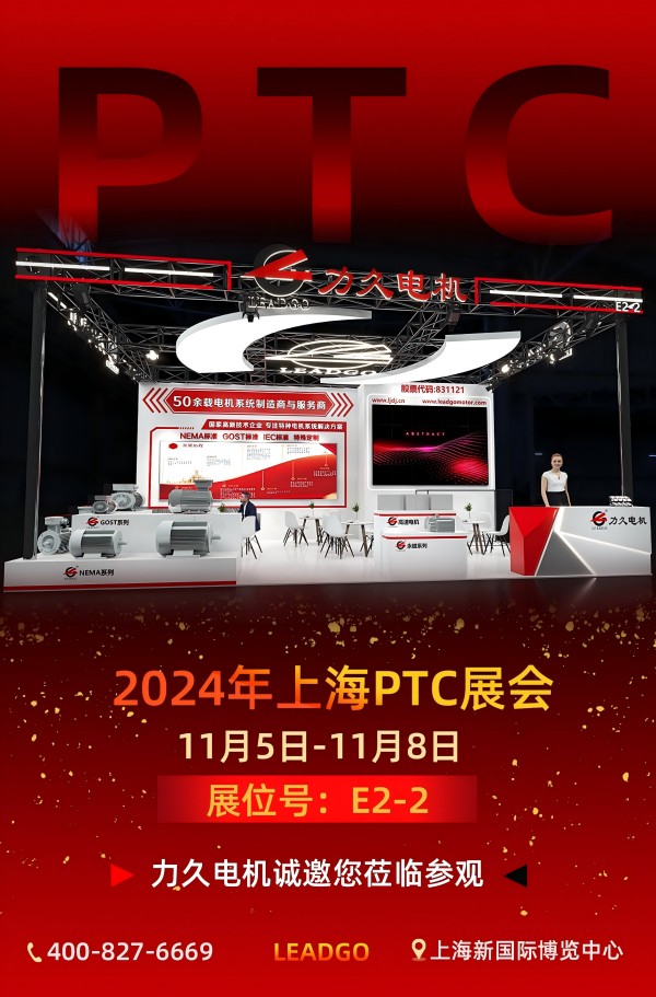 力久電機(jī)將在上海新國際博覽中心PTC展會(huì),展出NEMA電機(jī)系列、 防爆電機(jī)系列、IEC電機(jī)系列、 低壓大功率電機(jī)系列、 高壓電機(jī)系列、TYP系列等多個(gè)電動(dòng)機(jī)展品, 展會(huì)號(hào):E2-2,誠邀您蒞臨參觀。