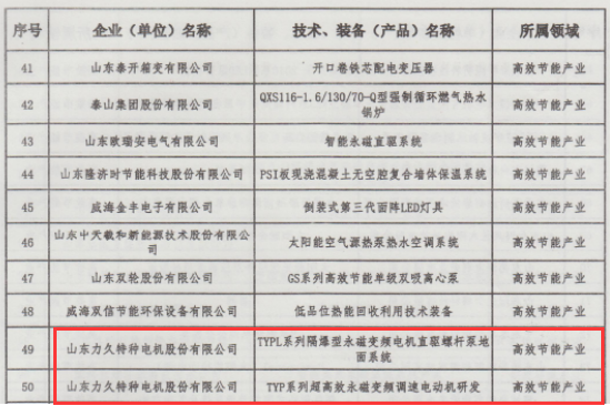 力久電機(jī)“TYPL系列隔爆型永磁變頻電機(jī)直驅(qū)螺桿泵地面系統(tǒng)”和“TYP系列超高效永磁變頻調(diào)速電機(jī)”成功列入《2017年山東省節(jié)能環(huán)保產(chǎn)業(yè)新技術(shù)、裝備(產(chǎn)品)推廣,目錄》。