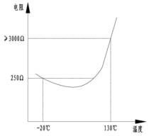 KYT84溫度傳感器是一種具有正溫度系數(shù)的半導(dǎo)體電阻,在參考溫度為100℃時電阻約為1000Ω,最大允許測量電流為2mA。溫度特性見圖: