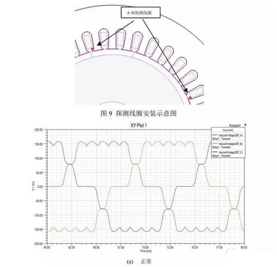當(dāng)電機(jī)發(fā)生偏心故障時(shí),會(huì)影響到氣隙磁場(chǎng),所以對(duì)氣隙磁場(chǎng)加以監(jiān)測(cè),將是電機(jī)故障檢測(cè)的一個(gè)可行的方法。如在氣隙中安放探測(cè)線圈,通過(guò)線圈中的感應(yīng)電動(dòng)勢(shì)就可以知道氣隙磁場(chǎng)的變化情況。