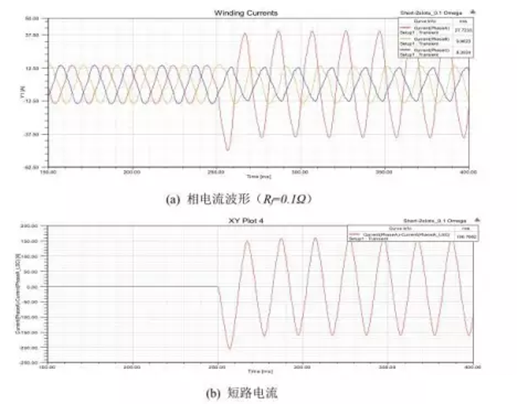 電機(jī)正常時(shí),電機(jī)的各個(gè)線圈之間有良好的絕緣,當(dāng)電機(jī)發(fā)生匝間短路故障時(shí),絕緣層被破壞,出現(xiàn)短路電流。因此短路電阻Rf的值越小,代表故障的程度更加嚴(yán)重。